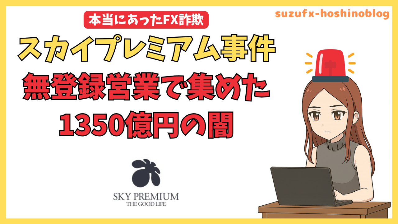 スカイプレミアム事件は、「ライオンプレミアム」という甘いFX投資話の裏に、無登録営業という違法行為と、顧客資金の使途不明という闇が隠されていた、本当に悪質な詐欺の典型例です。