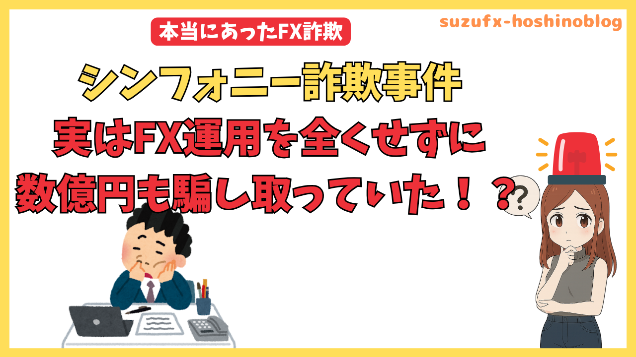 「シンフォニー事件」は、FX(外国為替証拠金取引)への投資を装って、たくさんの投資家から多額のお金をだまし取った、とっても大規模な詐欺事件なんです。