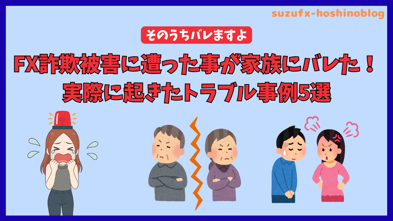 本日は、FX詐欺被害に遭って、家族にバレた時のトラブル事例について解説します!
